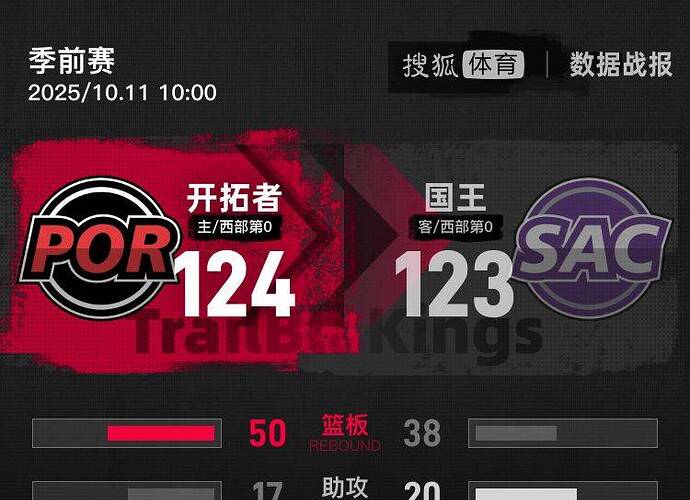 北京时间10月11日NBA季前赛,主场作战的开拓者以124-123击败国王。格兰特18分4篮板1助攻,拉文19分4篮板2助攻。